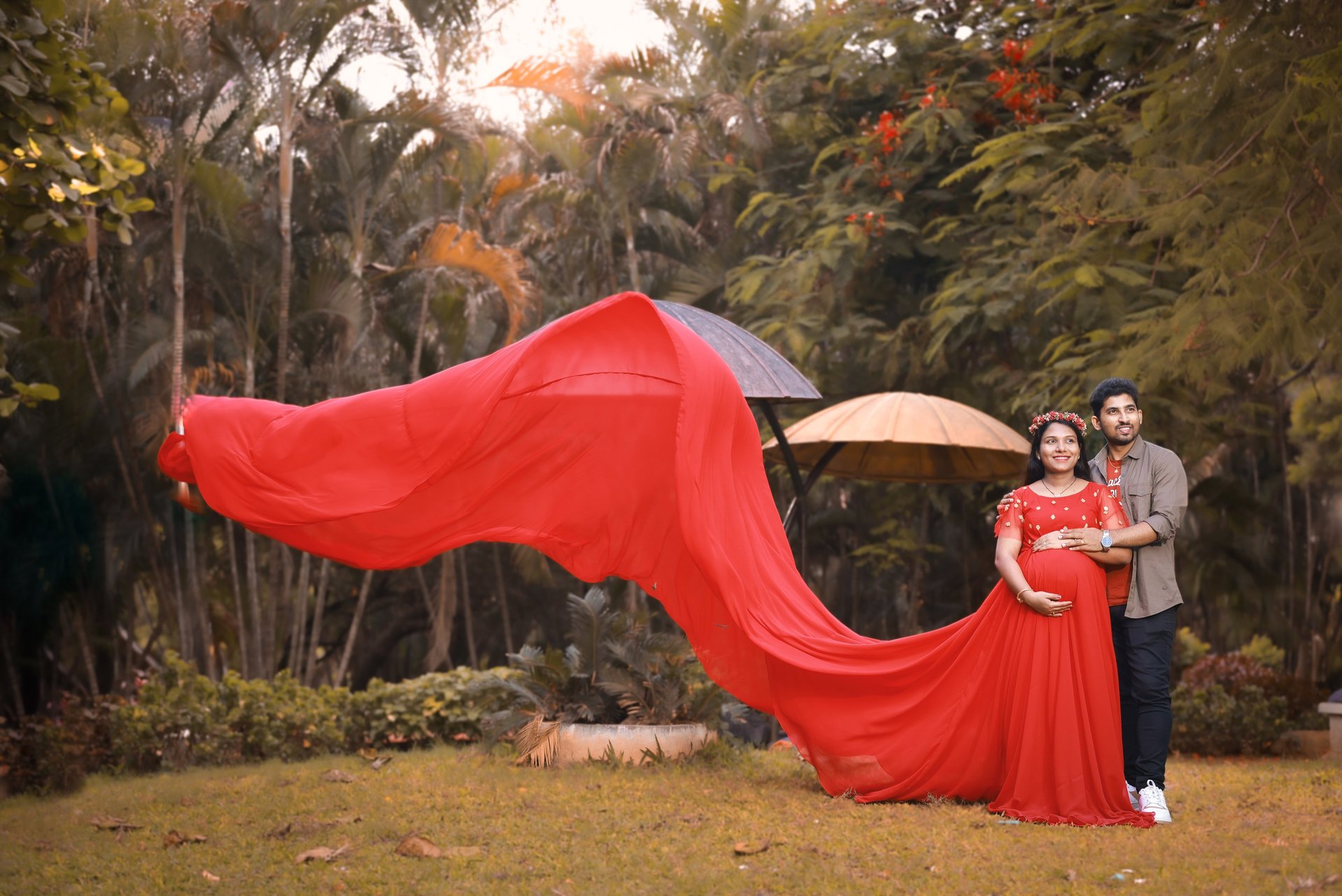 Vizag’s scenic locations—RK Beach, Rushikonda, Tenneti Park, Yarada Beach—provide the perfect backdrop for a magical maternity shoot. We specialize in outdoor maternity photography that blends natural light, nature, and creative posing. Imagine soft sunset silhouettes, flowing gowns, and candid moments captured by our professional team. These sessions are perfect for expecting mothers who love nature and want vibrant, joyful, and romantic pregnancy portraits. Our outdoor shoots include concept planning, location guidance, and customized styling for the best results.