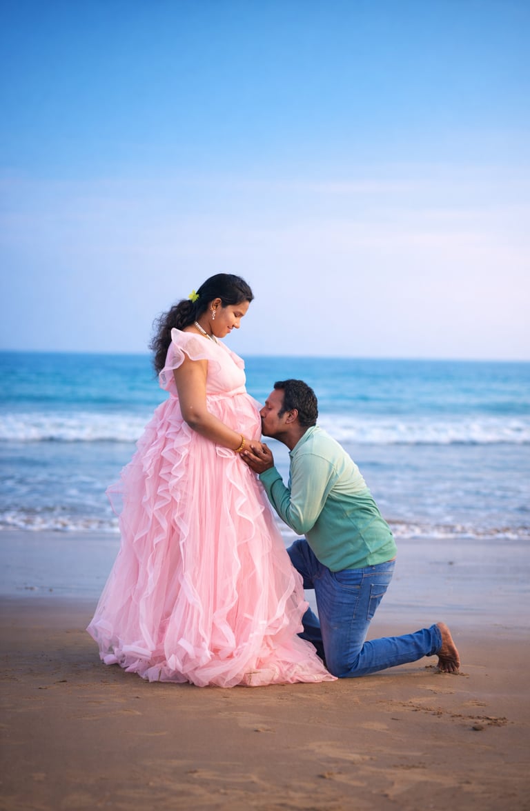 Whether you prefer an indoor maternity shoot, outdoor beach photoshoot, or a home maternity photoshoot in Vizag, our team ensures a stress-free and memorable experience.