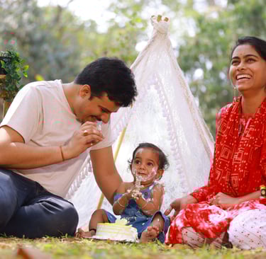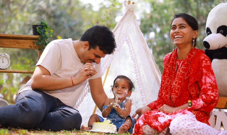 We offer theme-based pre-birthday photoshoots, outdoor garden sessions, cake smash photography, and studio shoots with premium props and customized backgrounds. Whether you want a royal theme, cartoon concept, vintage style, or minimal elegant setup, we plan every detail to make the photoshoot fun and stress-free for both kids and parents.